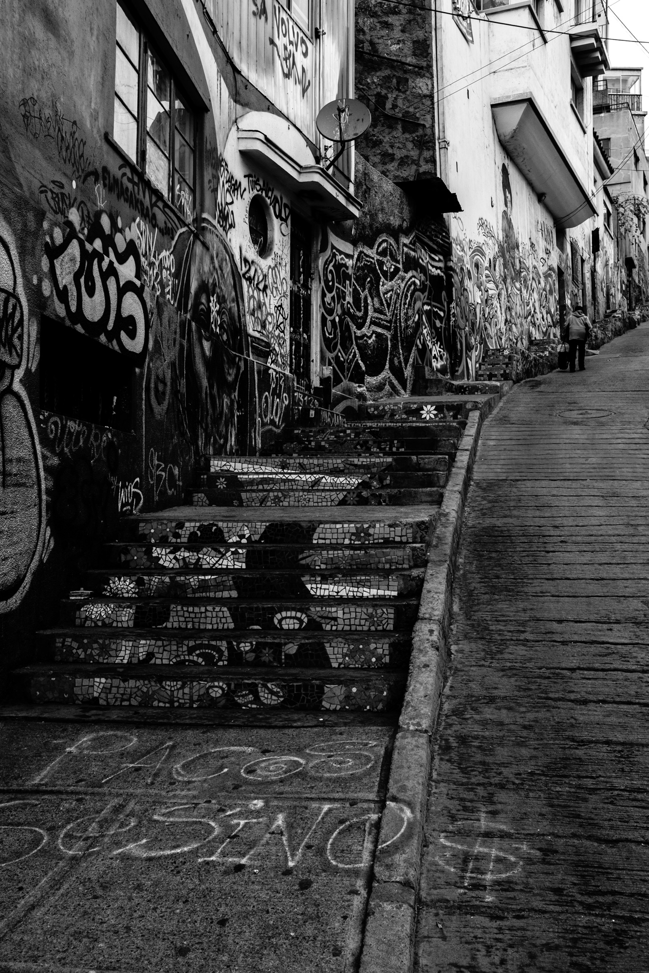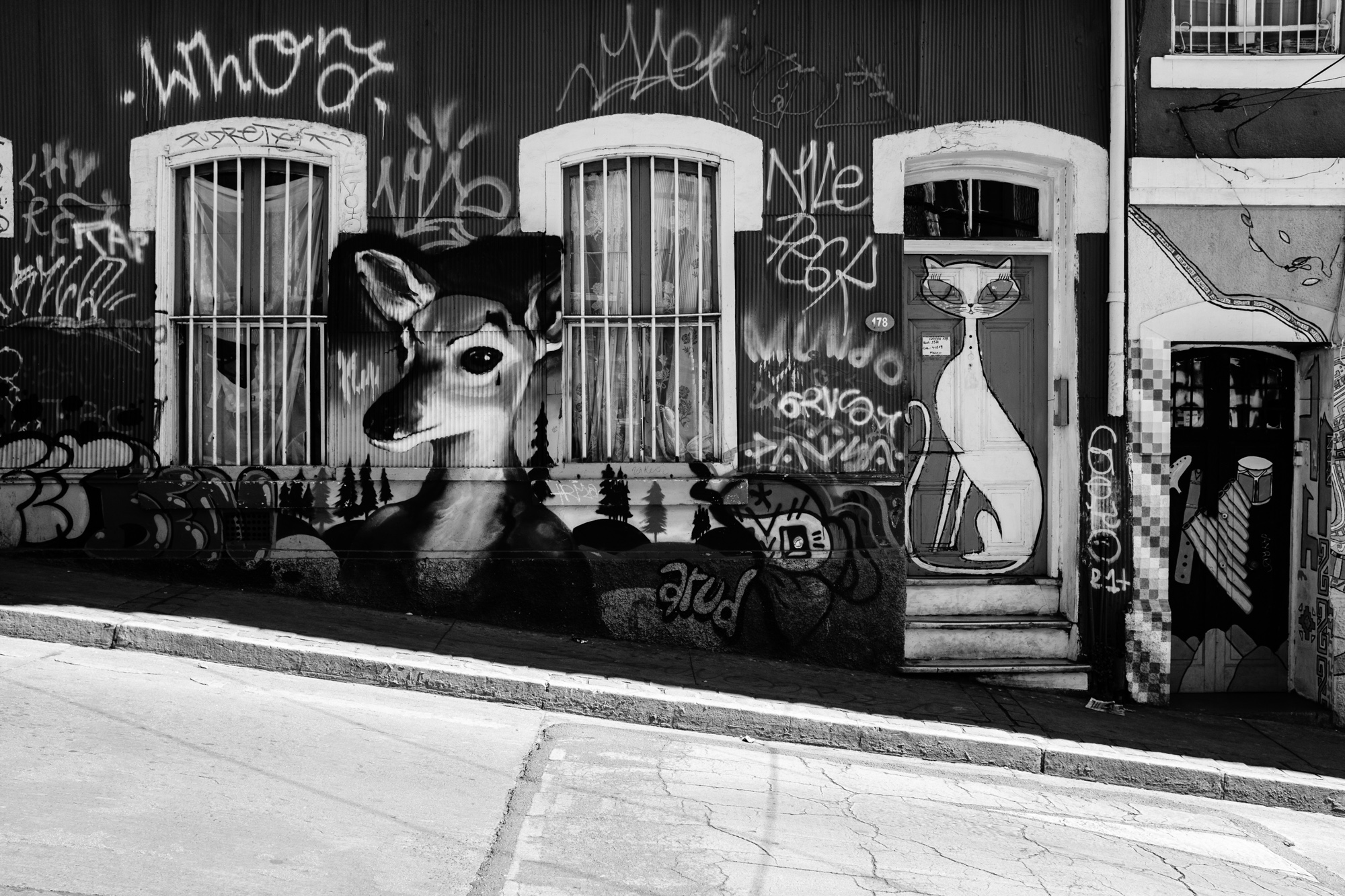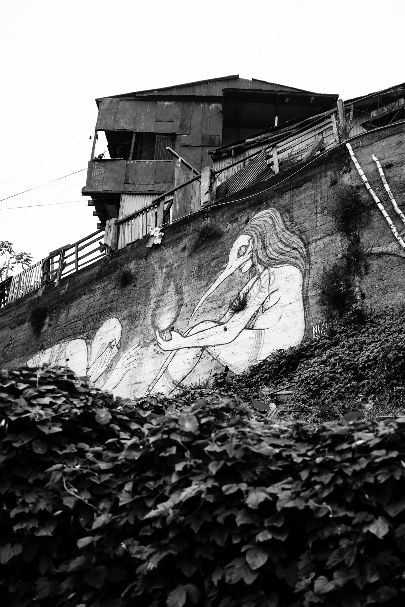 Valparaíso, also known as ‘Valpo’ on Chile’s westcoast presents one of South America’s finest street art of all kinds. The city is known for its bohemian culture, with festivals every year, musicians and street artists. It‘s a pleasure wandering around this seaport town with a camera discovering amazing graffiti, colored old buildings with wavy rusty metal facades or antique funiculars.